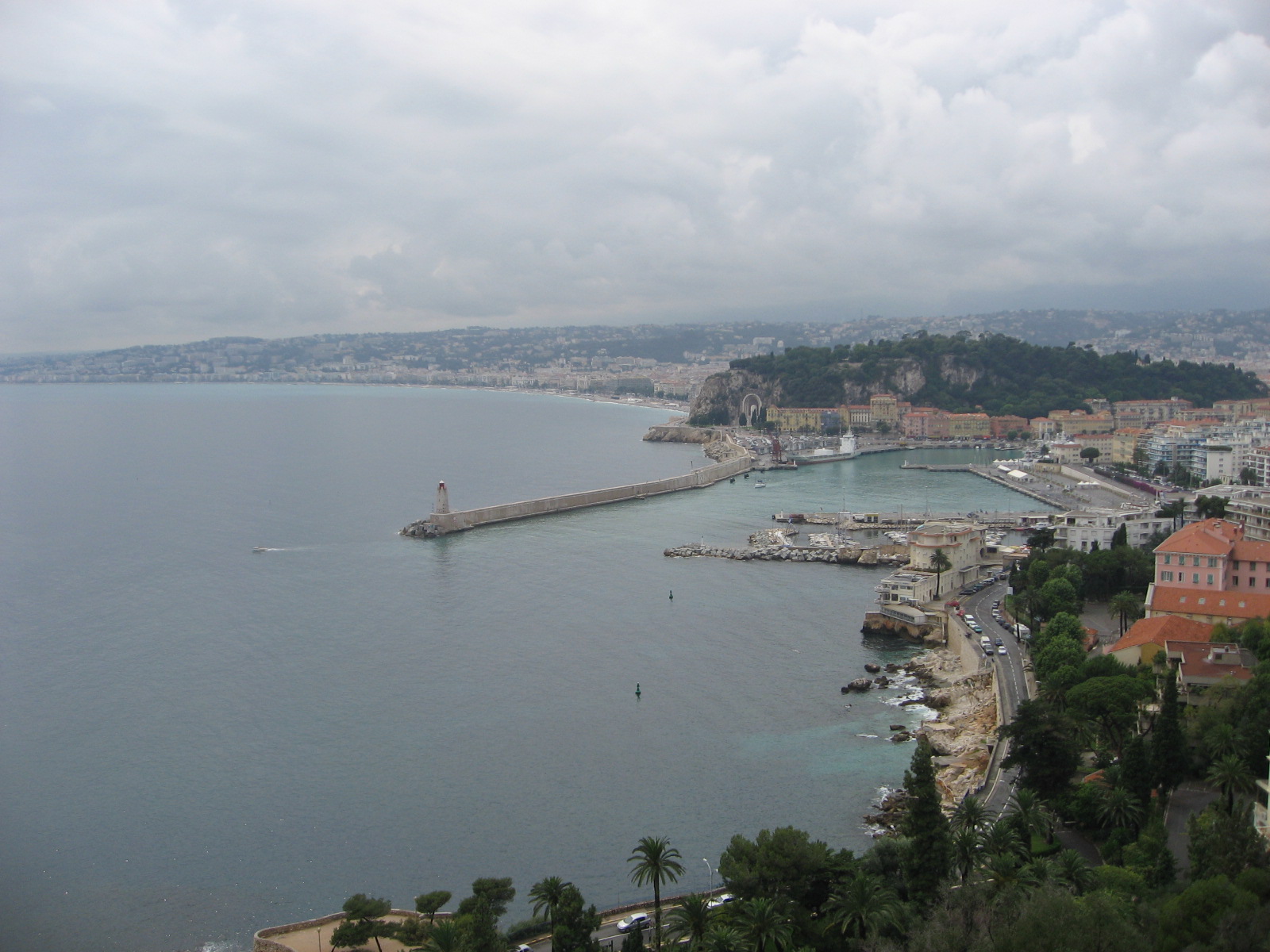 城跡公園の展望台から地中海の絶景 「天使の湾」を望む。 |